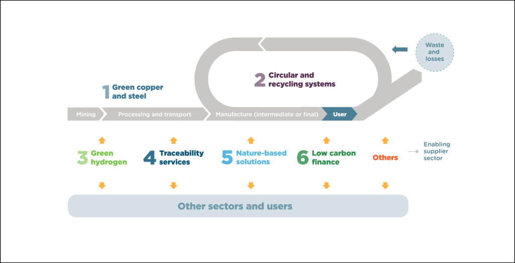 Condiciones y áreas que podrías respaldar la transición de la region de ALC a un cento mundial de soluciones y metales bajos en carbono.