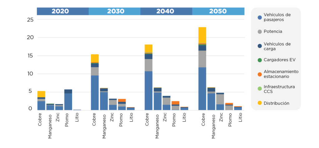 Fuente: Elaboración propia con base en resultados del modelo de Vivid Economics, Apalancando el Crecimiento de la Demanda en Minerales y Metales por la Transición a una Economía Baja en Carbono