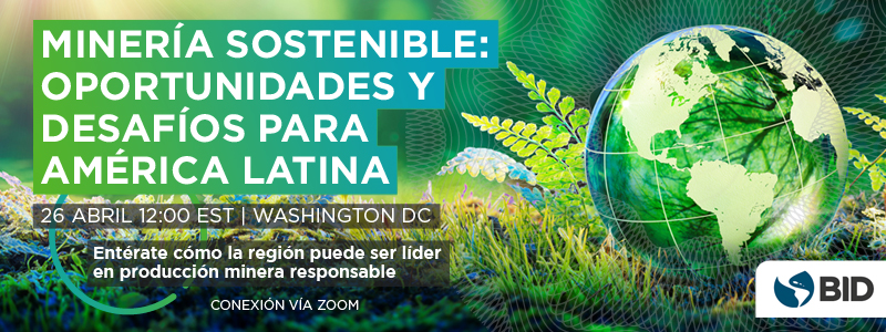¿Quiere seguir la conversación? Acompáñenos este próximo 26 de abril, de 12:00 a 1:00 PM en el evento Minería Sostenible: Oportunidades y desafíos para América Latina organizado por la División de Competitividad, Tecnología e Innovación del Sector de Instituciones para el Desarrollo, el Sector de Infraestructura y Energía y la Representación del BID en Chile. Durante el evento contaremos con la Profesora Carlota Pérez, investigadora, consultora internacional y especialista quien explicará el impacto del cambio tecnológico sobre nuevas vías en el desarrollo minero sostenible de América Latina y cómo podemos ser parte del cambio inclusivo y sostenible. Regístrese aquí.