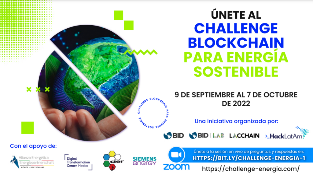 El combate del cambio climático es una de las prioridades para el Grupo BID bajo su Visión 2025 ,la hoja de ruta para alcanzar un crecimiento sostenible e inclusivo. Por ello, la División de Energía está enfocada en traer a la región los temas más relevantes relacionados con la digitalización del sector. Dentro de estas actividades, junto a LACChain y BIDLab, hemos creado el Challenge de Energía 2022, el cual invita a actores relevantes del sector energía y startups que cuenten con desarrollos que utilicen blockchain o de registros distribuidos en sus proyectos de uso a participar por la oportunidad de ganar premios para impulsar sus soluciones e impactar el ecosistema latinoamericano.