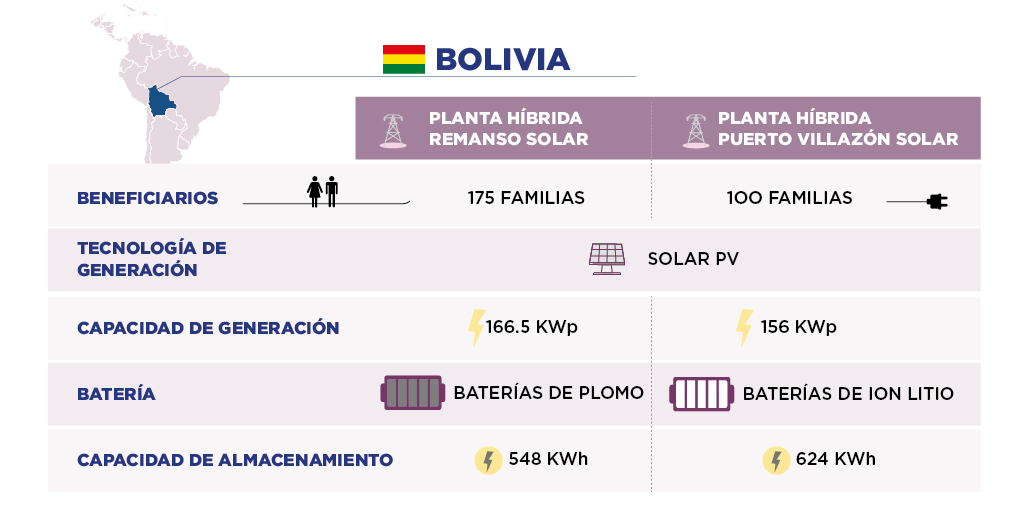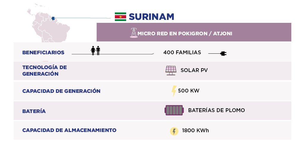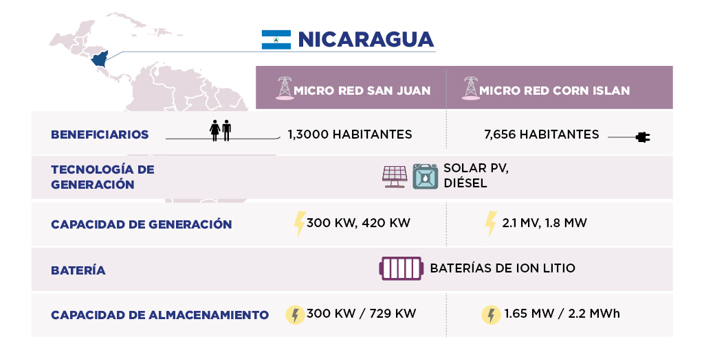El uso de baterías de plomo y de ion de litio en micro redes para la electrificación en áreas aisladas es la aplicación de mayor experiencia en cuanto a la instalación de SAE en la región. La introducción de los SAE para acompañar las centrales solares en zonas aisladas y en islas ha permitido eliminar o al menos disminuir la necesidad del uso de generadores diésel. Esto ha permitido aumentar la eficiencia de los sistemas, reducir los costos de operación y la compleja logística de suministro de combustible, así como las emisiones de CO2 y otros gases contaminantes locales, como monóxido de carbono, dióxido de azufre y óxidos nitrosos. En la tabla 2 se presentan algunos proyectos de micro-redes financiados por el BID en la región.