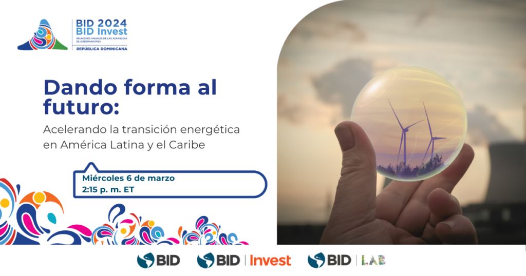 Como parte de nuestros esfuerzos, y dada la importancia de este tema para la estrategia institucional del BID en la creación de oportunidades de desarrollo inclusivas y sostenibles, organizamos el seminario “Transformar el futuro: Acelerar la transición energética en América Latina y el Caribe” el próximo 6 de marzo de 2023. A través de este evento, reunimos a expertos de diversos sectores dentro del panorama energético de la región para discutir cómo podemos avanzar y acelerar la transición energética.