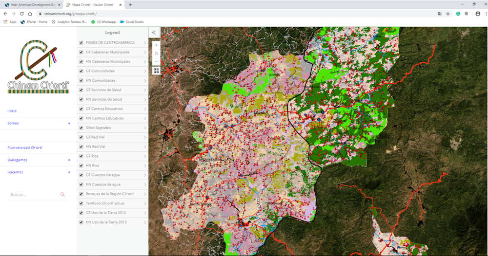 En Honduras y Guatemala, el pueblo indígena Maya Ch’orti’ también realizó el mapeo cultural de su territorio usando la plataforma Google Earth. Este paso constituyó un elemento crucial para su consolidación como una sola Nación Ch’orti’. Para los Ch’orti’ de ambos países, quienes a pesar de mantener profundos lazos familiares e históricos han permanecido separados durante varios siglos por una frontera nacional que no estaba en sus planes, la visualización de su territorio a través de esta tecnología constituyó un elemento vital en la reivindicación de su identidad colectiva. El acceso a las tecnologías digitales, incluyendo el internet, ha permitido a los jóvenes Maya Ch’orti’ documentar la historia oral de sus abuelos, en su idioma ancestral, mediante videos que luego difunden a través de sus plataformas digitales.