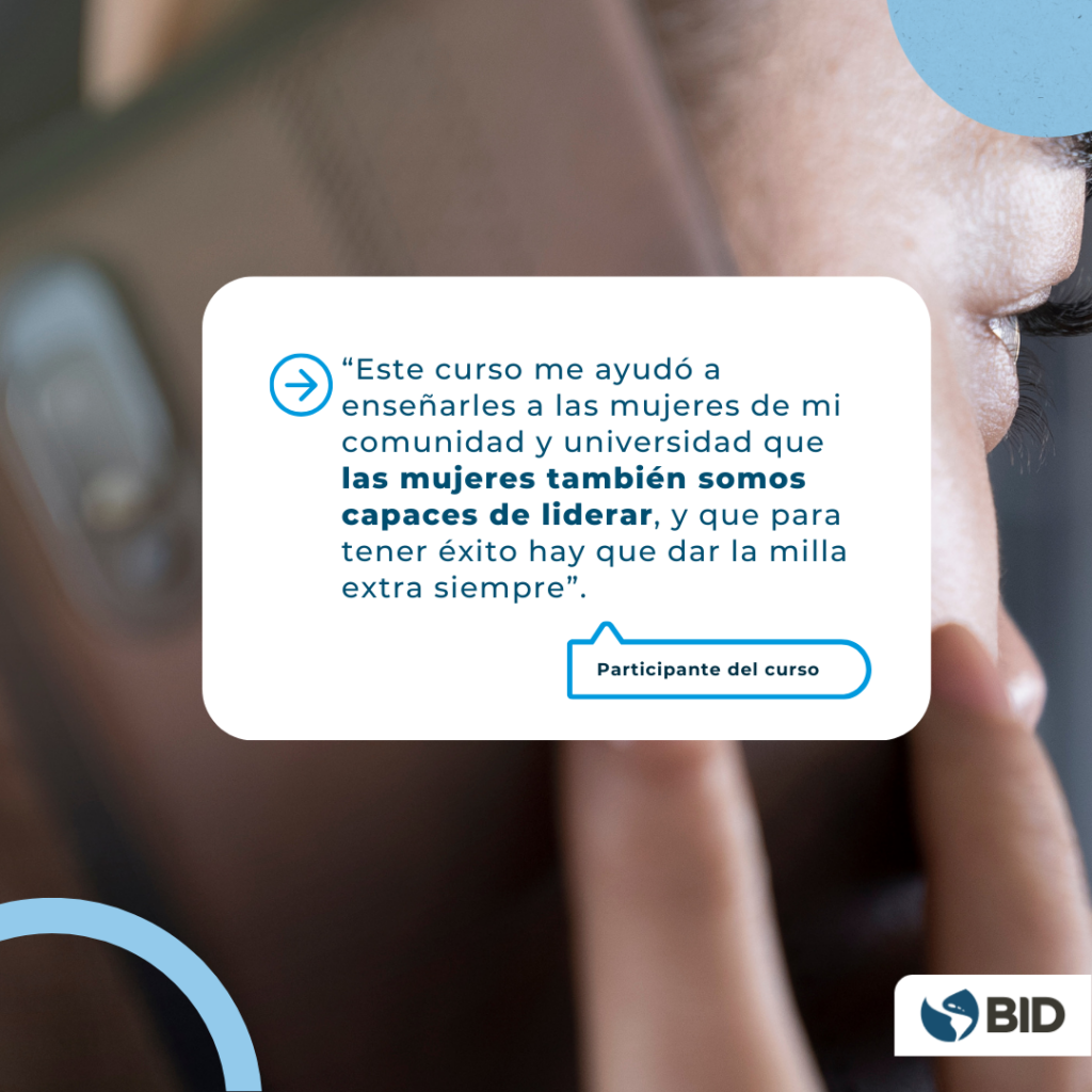 Desde el BID, estamos apostando por una región en donde las mujeres no solo sean reconocidas en más y mejores roles de liderazgo, sino que cuando lleguen a estos, tengan las herramientas necesarias para ejercerlos.