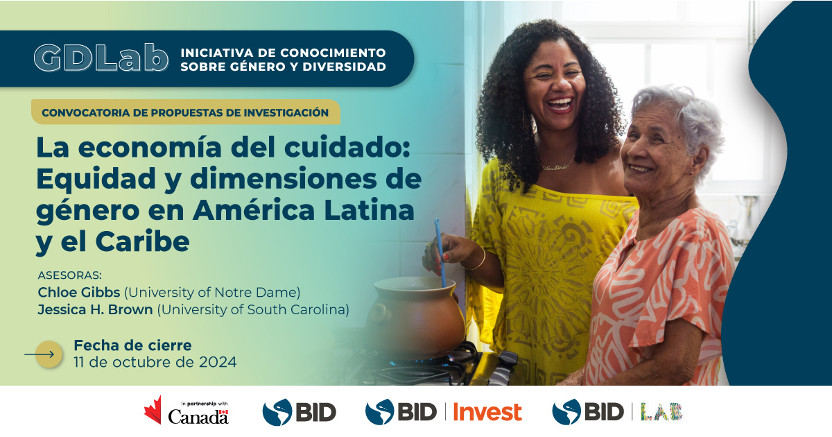 El GDLab, la Iniciativa de Conocimiento sobre Género y Diversidad del Grupo Banco Interamericano de Desarrollo (Grupo BID), lanza una nueva convocatoria de propuestas enfocada en la economía del cuidado. A través de esta convocatoria, GDLab busca financiar estudios académicos cuantitativos que proporcionen evidencia sólida sobre programas y políticas efectivas para promover prácticas equitativas del cuidado entre géneros y a lo largo del ciclo de vida en América Latina y el Caribe.