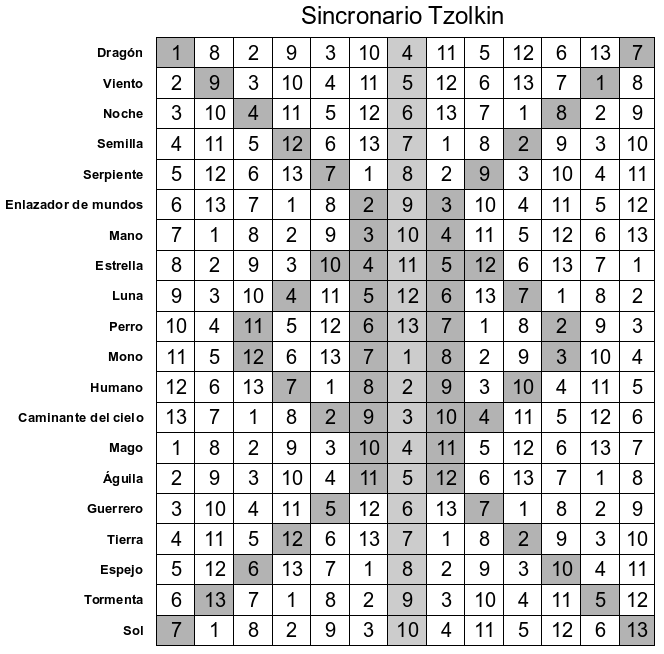 Este sistema (Tz’olkin para los Mayas o Tonalmatl en el centro de México) era utilizado a como base para dar el nombre a una persona. Funcionaba dependiendo del día que había nacido, el cual era una combinación de números del 1 al 20 y de las 13 energías que según estos pueblos rigen al ser humano.