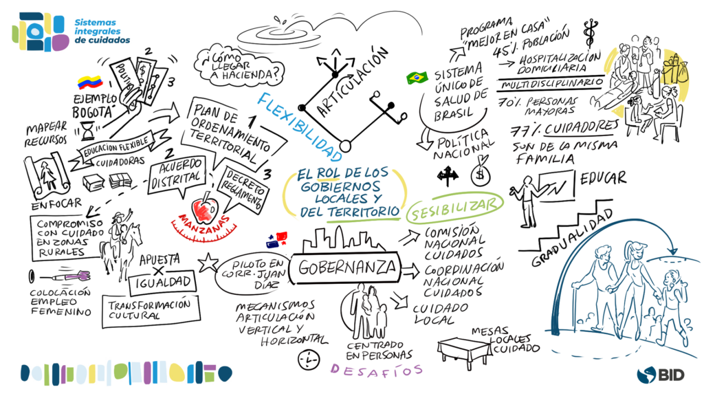 En América Latina y el Caribe, no solo hay grandes avances a nivel nacional, sino que también hay excelentes programas de cuidado en las ciudades, municipios y territorios. Algunos ejemplos incluyen el sistema Distrital de Cuidado Bogotá; el proyecto piloto de “Gestión Local de Cuidados en el Corregimiento de Juan Díaz” en Panamá; y el programa Melhor em Casa del Gobierno de Brasil mediante el cual se coordinan los esfuerzos federales y locales para lograr ampliar la oferta de servicios de atención en salud en los territorios del país.