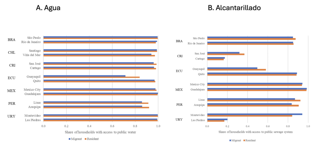 Gráfico 2 Acceso público al agua y al alcantarillado en ciudades de América Latina y el Caribe por estatus migratorio
