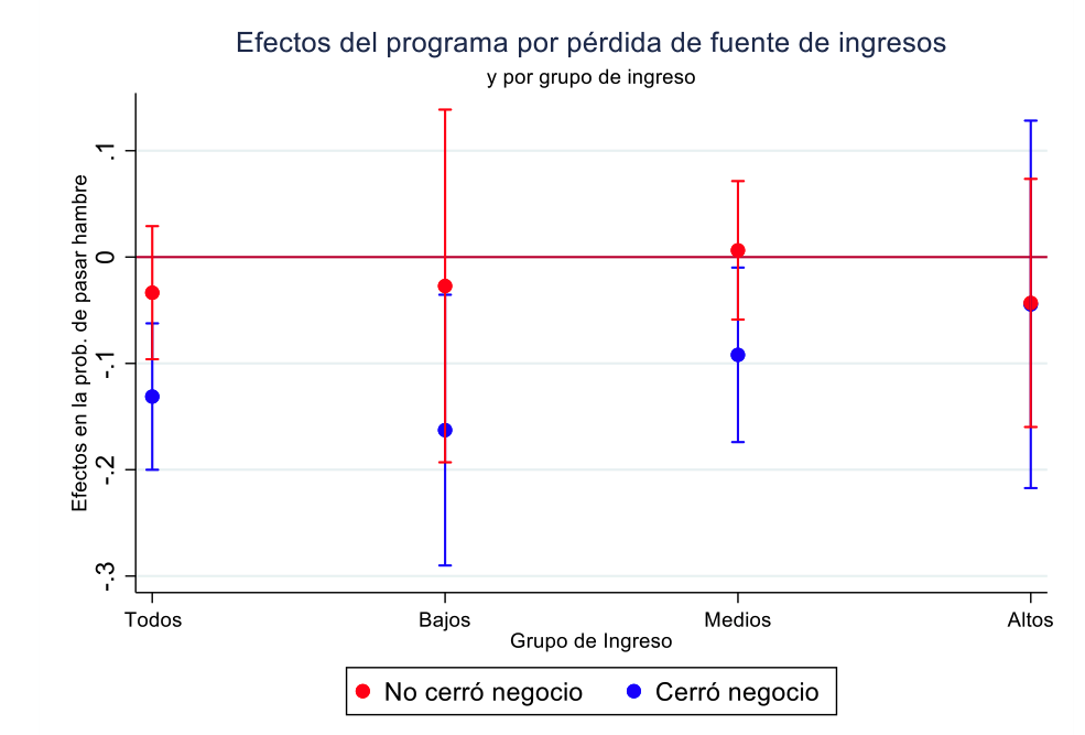 Gráfico 2: Efectos del programa en el hambre, por ingresos y exposición al cierre de negocios.