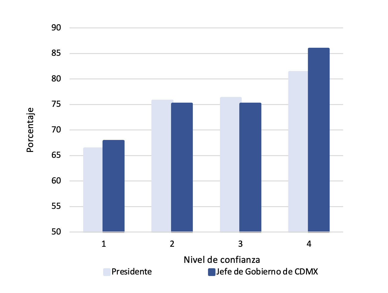 Nuestras conclusiones muestran que la confianza es significativa para explicar las actitudes de los ciudadanos y las demandas en materia de políticas públicas. Observamos que aproximadamente tres de cada cuatro encuestados estarían dispuestos a pagar un impuesto adicional de $100 pesos para evitar contingencias (emergencias ambientales declaradas en los días en que los niveles de contaminación atmosférica superan o se prevé que superen los estándares oficiales de México) y que este apoyo al incremento de los impuestos se correlaciona con la confianza en el gobierno. En concreto, la disposición a pagar el impuesto es entre 3 y 5 puntos porcentuales más alta por cada aumento de 1 unidad de confianza en el presidente (medido en una escala de confianza de 4 puntos).
