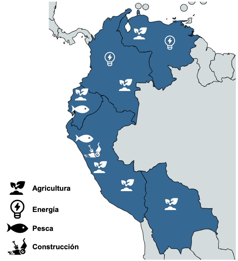 Estos efectos varían en cada país de los Andes, con distintos fenómenos meteorológicos y distintas intensidades. Y repercuten de manera distinta en los sectores económicos. Por ejemplo, en Bolivia, Ecuador y Perú, el FEN ha provocado un exceso de precipitaciones, con importantes efectos en actividades extractivas como la pesca y la agricultura. Mientras tanto, en Colombia y Venezuela, ha generado un descenso de las precipitaciones, afectando al sector agrícola y la generación de electricidad, con los consiguientes aumentos en las tarifas energéticas y presiones inflacionarias.