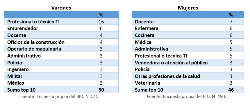 Fuente: Encuesta propia del BIDPregunta: Pensando en tu futuro, en cuanto al trabajo, ¿qué tipo de trabajo te gustaría estar haciendo en 2027, es decir, dentro de 5 años?”