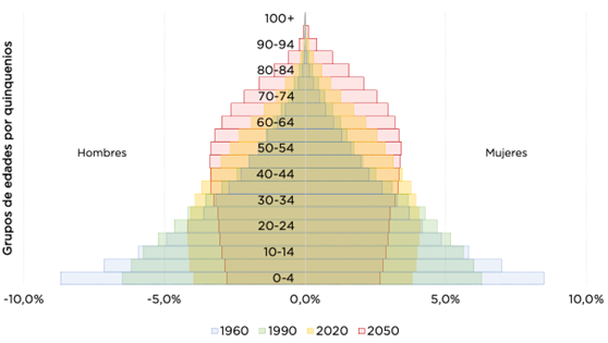Pirámide poblacional en América Latina y el Caribe, 1960-2050