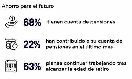 Resultados de la encuesta a usuarios conductores de Beat Al hablar del retiro destaca que el 63% de los usuarios conductores encuestados planean continuar trabajando una vez que alcancen la edad del retiro. En todos los países, más de la mitad de los trabajadores aspiran a seguir trabajando pasada la edad de jubilación, siendo los usuarios conductores peruanos los más optimistas en este sentido (el 69% espera seguir en activo atravesada la edad de retiro). Esta expectativa no es muy distinta a los datos observados en los países seleccionados, pues los hombres mayores de 65 años tienen tasas de participación laboral cercanas al 50%.
