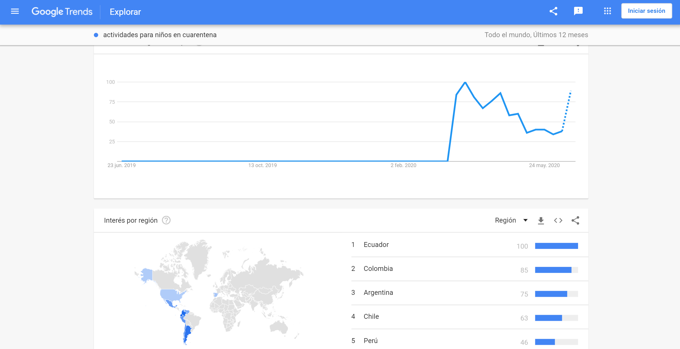 Tele aulas, proyectos de ciencia, juegos en línea interactivos y videos educativos. Muchas han sido las herramientas que los padres y las escuelas han explorado para mantener sus hijos y alumnos entretenidos en casa y, a la vez, dar continuidad a su proceso educativo, durante la pandemia. No es sorpresa que en una búsqueda en el motor de Google trends sobre “actividades para niños en cuarentena” veamos un pico repentino hacia los inicios de marzo, exactamente 15 de marzo. Sin embargo, no todos tienen las mismas condiciones – infraestructura física, conectividad entre otros – para apoyar a sus niños. Imagínate la situación de una familia migrante en situación de vulnerabilidad. Esta pregunta no es menor, en especial si tenemos en cuenta que como lo reporta Unicef , en la región hay por lo menos 1.1 millones de niños con necesidades de asistencia.