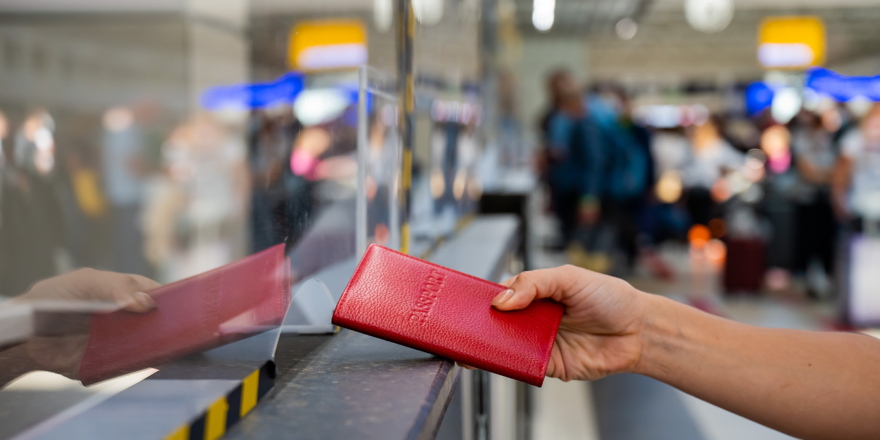 Woman hands her passport to an officer
