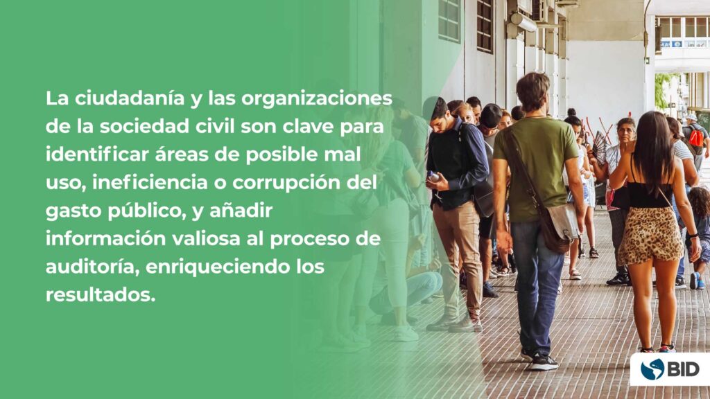 La ciudadanía y las organizaciones de la sociedad civil (OSC) pueden ayudar a identificar áreas de posible mal uso, ineficiencia o corrupción del gasto público, y añadir información valiosa al proceso de auditoría, enriqueciendo los resultados, especialmente en áreas donde tienen conocimientos y experiencia relevante como, por ejemplo, protección del medioambiente, políticas de igualdad de género y diversidad, y salud reproductiva.