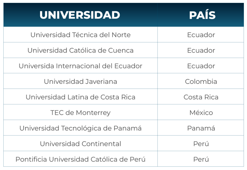 Fuente: elaboración propia. A cada institución educativa se le ofreció 4 plazas: 1 para un instructor y 3 para estudiantes, por lo que se contó con más de 30 participantes en total, entre profesores y alumnos. Previo a la sesión de entrenamiento, se realizaron dos sesiones de capacitación a los profesores de las universidades que fueron seleccionados para fungir como instructores durante esta primera sesión.