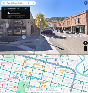 Interfaz Google Maps actual. Fuente: captura de pantalla de Google Maps en la ciudad de Aspen, EEUU.