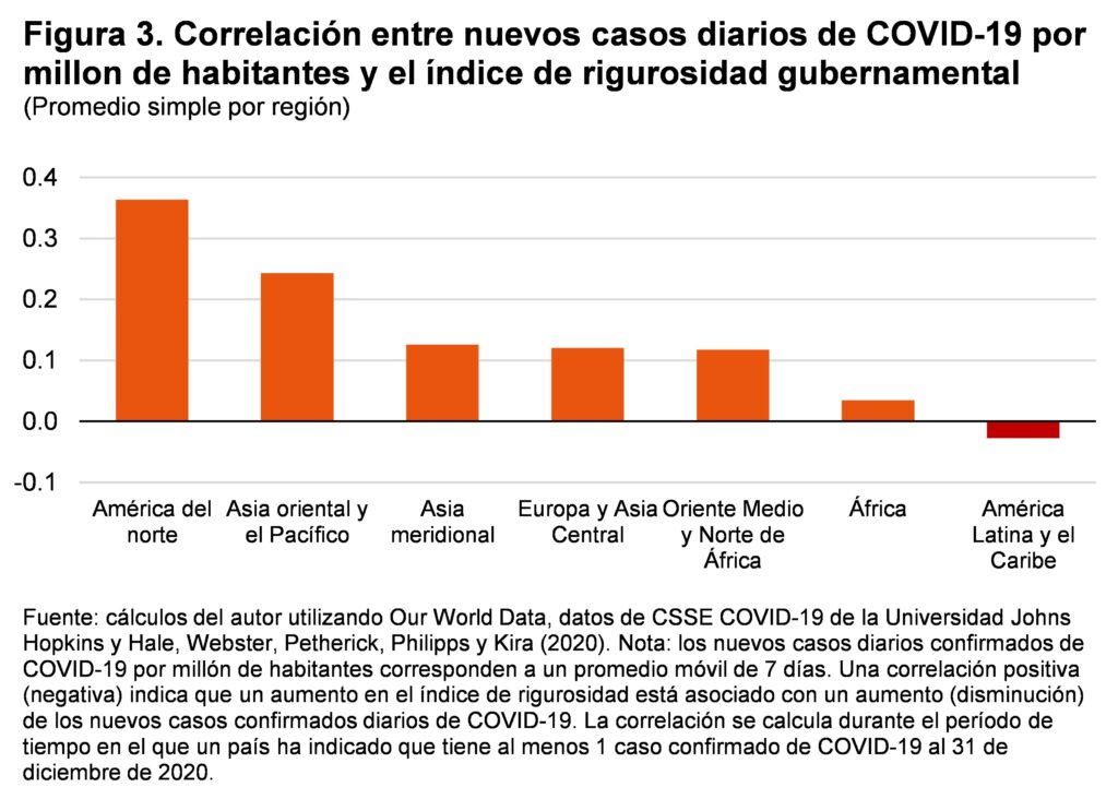 ¿A qué se debe esa correlación negativa en ALC entre el índice de rigurosidad y los nuevos casos diarios?