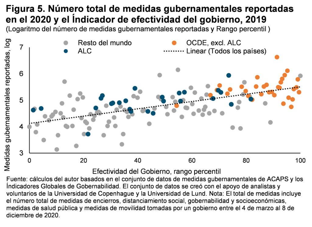 ¿Cómo han sido las respuestas gubernamentales al COVID-19 en ALC comparadas con el resto del mundo?