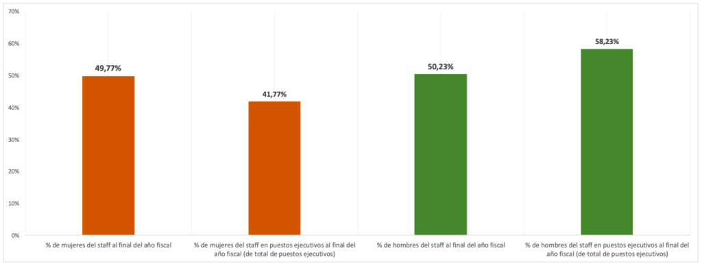 Gráfico 1. Porcentaje de distribución por género de total de staff y puestos ejecutivos en administraciones tributarias de ALC