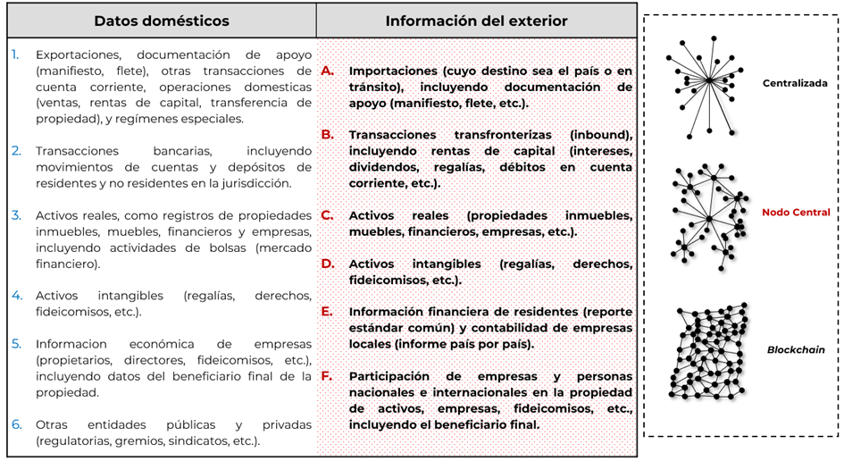 Figura 2. Fuentes internas y externas de la administración tributaria en el futuro, y prototipos de redes para estructurar la información tributaria