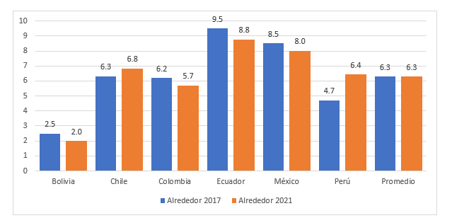 Fuente: elaboración con información de los países y World Economic Outlook (2022). Promedio para los siguientes países: Argentina, Brasil, Chile, Colombia, Ecuador, El Salvador, Guatemala, México y Perú.Análisis a nivel país