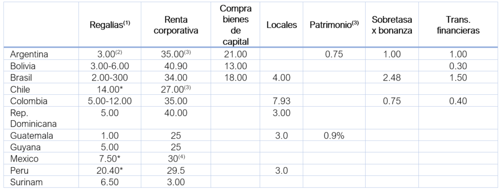 Estos esquemas están presentes en países como Chile y Perú, los cuales se encuentran adaptándolos ante la creciente demanda por minerales críticos para atender las necesidades de la transición energética y las comunicaciones. Chile es el primer país de la región en adecuar su legislación sobre las regalías para la actividad minera e industrial del litio. Bolivia, Perú, Argentina, y Brasil están en este proceso de discusión y revisión.