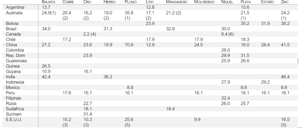 Nota: En algunos países, los gobiernos subnacionales son dueños de los recursos mineros. Los más significativos se incluyen en esta tabla: