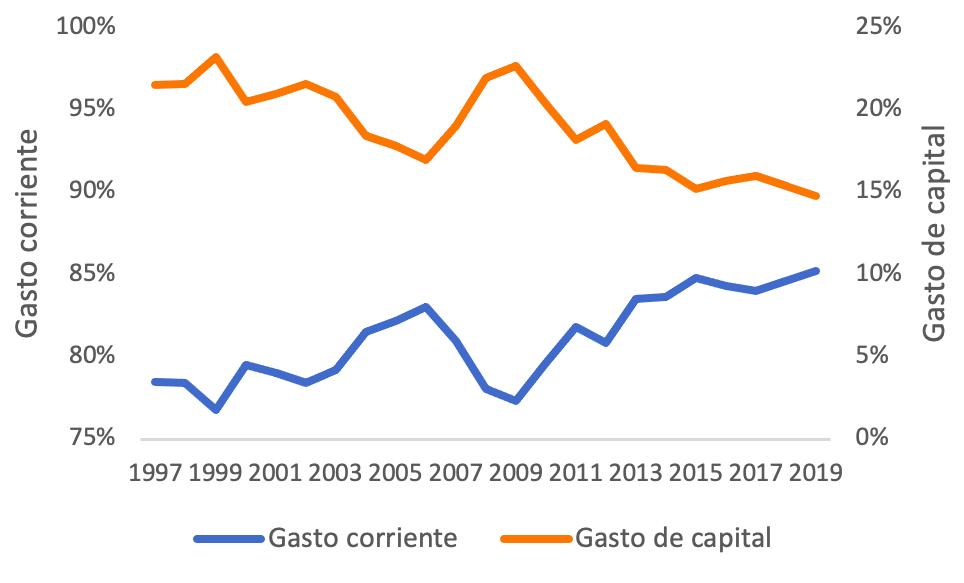 Gasto público corriente y de capital del Sector Público No Financiero (% gasto primario)