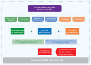 Esto implica que, para cumplir el objetivo de garantizar la seguridad alimentaria, se deben considerar acciones que abarquen todas las dimensiones que interactúan como parte del sistema agroalimentario, y que consideren todos los eslabones de la cadena de suministro de insumos y alimentos. Los gobiernos deben promover acciones que: