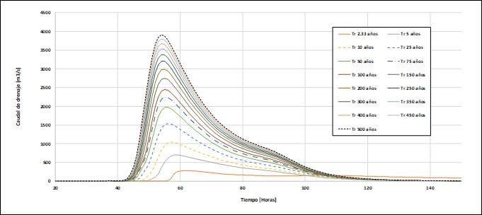 Hidrogramas de creciente estimados para condición de precipitación históricaen la cuenca de drenaje del puente 120 (río Estimé)