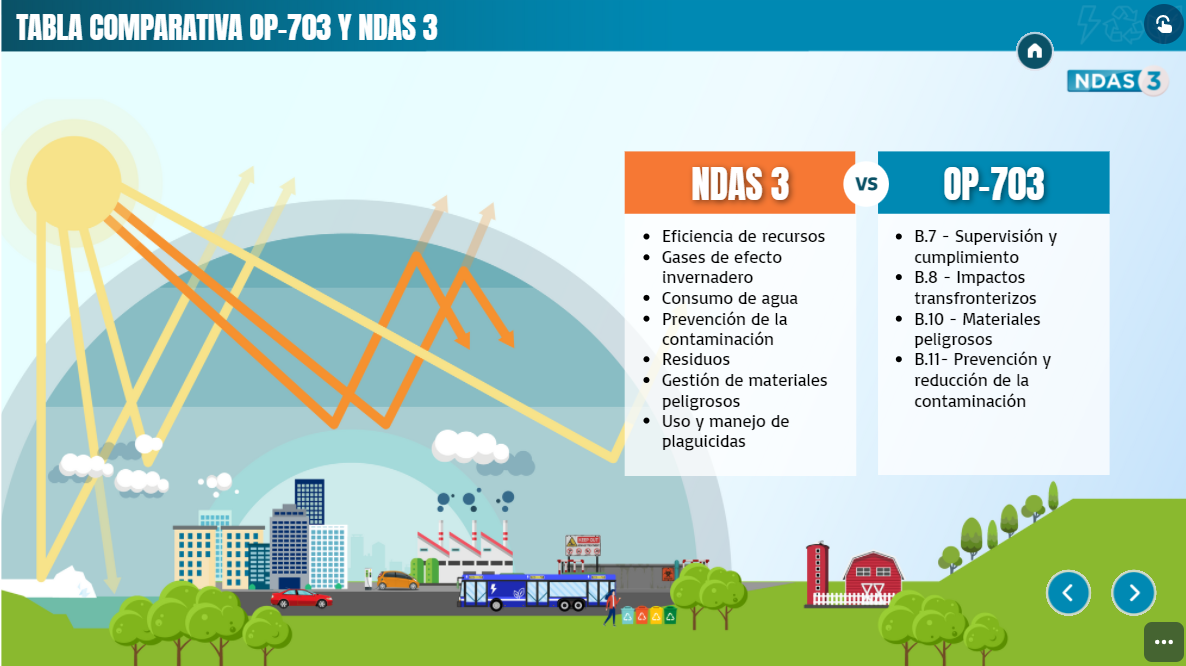 Imagen tomada del curso sobre la nueva Norma de Desempeño Ambiental y Social 3, el cual amplia el conocimiento sobre el uso eficiente de recursos y la prevención de la contaminación en el contexto de un proyecto.La evaluación de impacto es clave para la sostenibilidad, tanto a nivel personal como a nivel de proyecto. En el BID estamos comprometidos con proporcionar a nuestros socios en la región herramientas para mejorar su comprensión de los riesgos e impactos relacionados con los proyectos, incorporar medidas de mitigación en la fase de diseño y fortalecer su capacidad para tomar decisiones informadas a lo largo del ciclo de vida del proyecto.