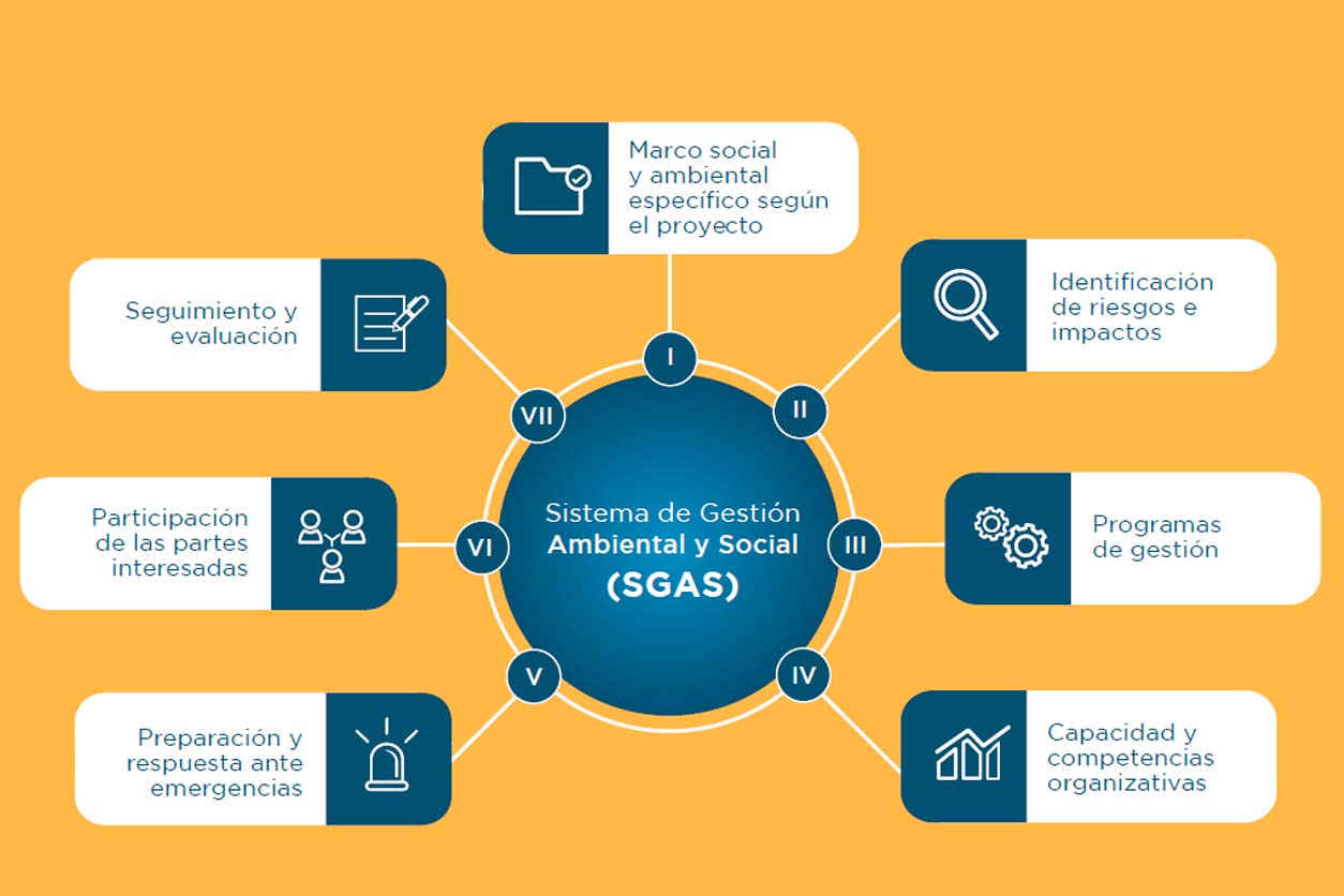 La NDAS 1 exige a los prestatarios la elaboración de un SGAS específico para el proyecto que cuente con un enfoque metodológico que asegure la gestión de los riesgos e impactos ambientales y sociales de una manera estructurada, sistemática y constante. Un SGAS eficaz es un proceso dinámico y continuo que el prestatario pone en marcha y respalda, y que implica una colaboración entre este, sus trabajadores, contratistas, proveedores y otras partes interesadas. Por otra parte, un SGAS adecuado está alineado con la escala y la naturaleza de los proyectos y promueve un desempeño ambiental y social sólido y sostenible, con mejores resultados financieros, ambientales y sociales.