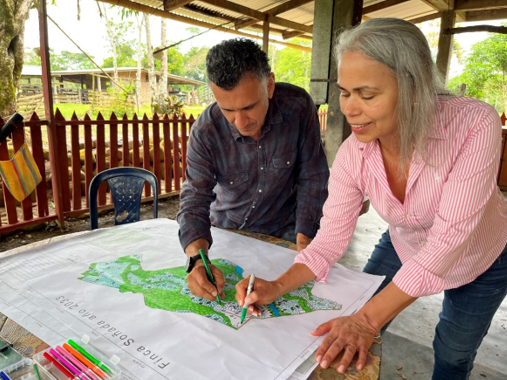 “Recorrer nuestra finca y dibujarla en el ejercicio de la planificación predial nos aporta no solo una visión para optimizar nuestras fincas de manera productiva, sino que también reconocemos la importancia de incorporar procesos de conservación. Esta integración nos permite equilibrar la producción agrícola con la preservación del entorno, asegurando un futuro próspero y en armonía con la naturaleza para las generaciones venideras”, afirma Óscar Polanía, participante de este programa, restaurador y productor de cacao agroforestal.