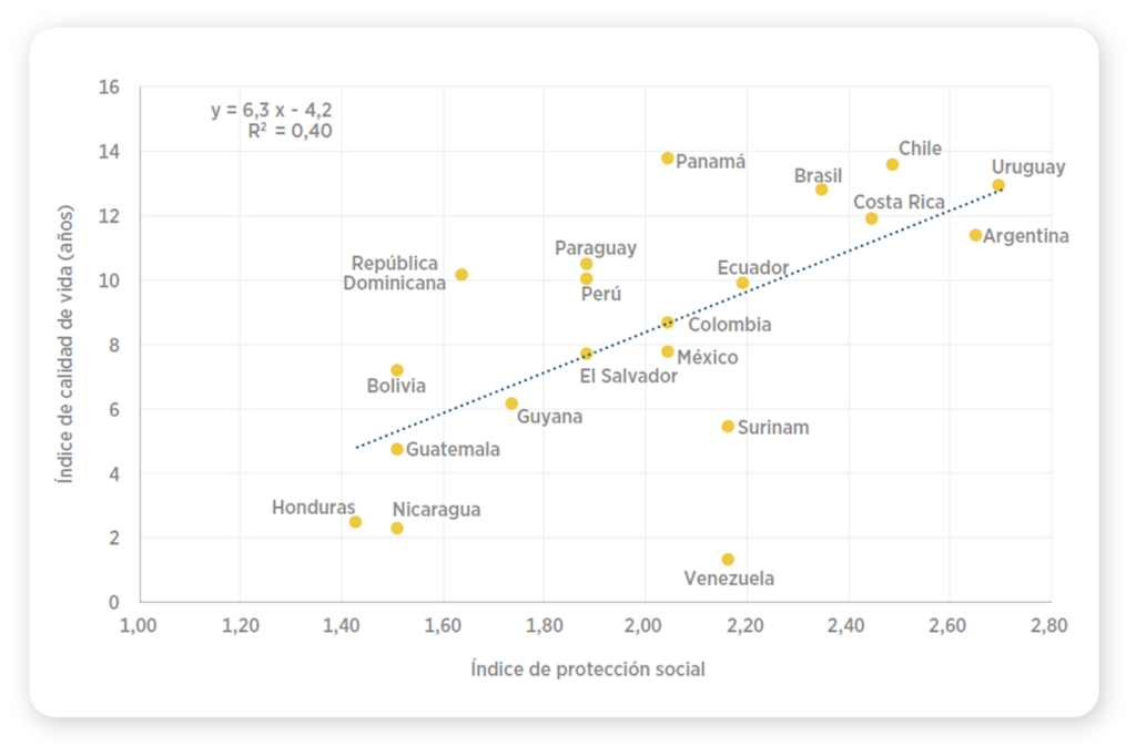 ¿Cómo cambia el nivel de protección social en la región de país en país?