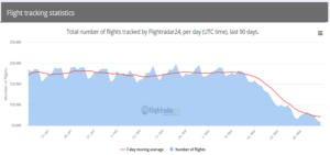 Según datos de flightradar24, el portal de la empresa Sueca Svenska Resenätverket AB, que ofrece información sobre el sector aéreo en el mundo, en los últimos 90 días en promedio en el mundo, se movilizaron 160.000 vuelos diarios.