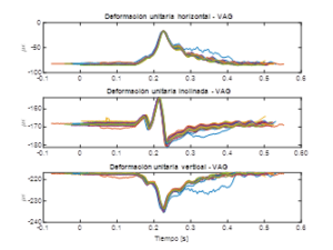 Son dos los antecedentes. El primero fue un estudio realizado como proyecto de graduación de la Escuela de Ingeniería Civil (EIC). Se realizó una prueba piloto en la cual se identificaron 3 vehículos pesados sobre un puente tipo Bailey (Carrillo, 2019). A pesar de que se encontraron dificultades debido al tipo de puente, se obtuvo diferencias menores al 10% con respecto a un camión de calibración. No obstante, no se pudo corroborar la confiabilidad y eficacia del método, puesto que no se contrastó con mediciones en balanzas estáticas y se requieren obtener diferencias aproximadas a un 5%. Ante dicho escenario, el ingeniero Sergio Lobo (coautor de este blog), gestionó la realización de un segundo piloto, que fue realizado entre el 17 y 18 diciembre de 2019, con una colaboración entre la Universidad de Costa Rica (UCR) y la Universidad de Connecticut (UConn). Los resultados preliminares sugieren una desviación por porcentaje de error promedio del 5% y coeficientes de determinación mayores a 0.945. Estos resultados podrían deberse a errores sistemáticos que se podrían disminuir o relacionar a un factor, lo cual presenta la opción de desarrollar un método BWIM tropicalizado que sea confiable y eficaz. Puentes del segundo piloto Sensores, acelerógrafo, nodo y computadora portátil Deformaciones unitarias registradas para el vehículo CAM, en una de las rosetas colocadas en el puente sobre el Río Desjarretado.
