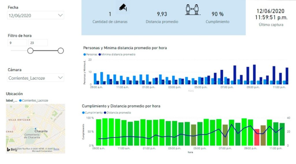 Bogotá, Buenos Aires, Curitiba, La Paz y Quito, entre otros, se aliaron con el BID para la aplicación de la plataforma de código abierto “Distancia2” (Figura 1), que utiliza video detección e inteligencia artificial para monitorear el distanciamiento social en zonas de alto tráfico de personas, como estaciones de metro, calles de las ciudades y mercados, y brindar información a las autoridades para la implementación de acciones que mitiguen el riesgo de aglomeración en tales zonas (ver vídeo).