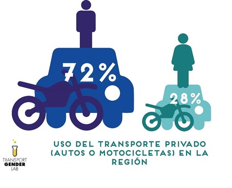 En América Latina existe una tendencia hacia la priorización del uso del automóvil propio por parte de los varones miembros de la familia respecto de las mujeres. Ellos suelen ser los principales conductores. El promedio regional indica que 72% de los hombres utilizan el transporte privado (autos o motocicletas), mientras que las mujeres son usuarias en 28% del total de viajes al trabajo (BID, 2021).