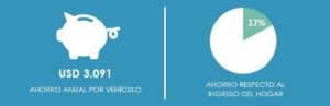 El abandono del modelo actual de propiedad privada del vehículo y el advenimiento de la tecnología de los vehículos autónomos permitirá obtener importantes ahorros para los hogares de la región. Asumiendo un criterio conservador de que en la región el costo de esta nueva modalidad será también de 0,10 dólares por kilómetro, se obtiene un ahorro anual de 3.091 dólares por vehículo. Este valor representa el 17% del ingreso mensual promedio de los hogares de las ciudades analizadas en el estudio del BID.