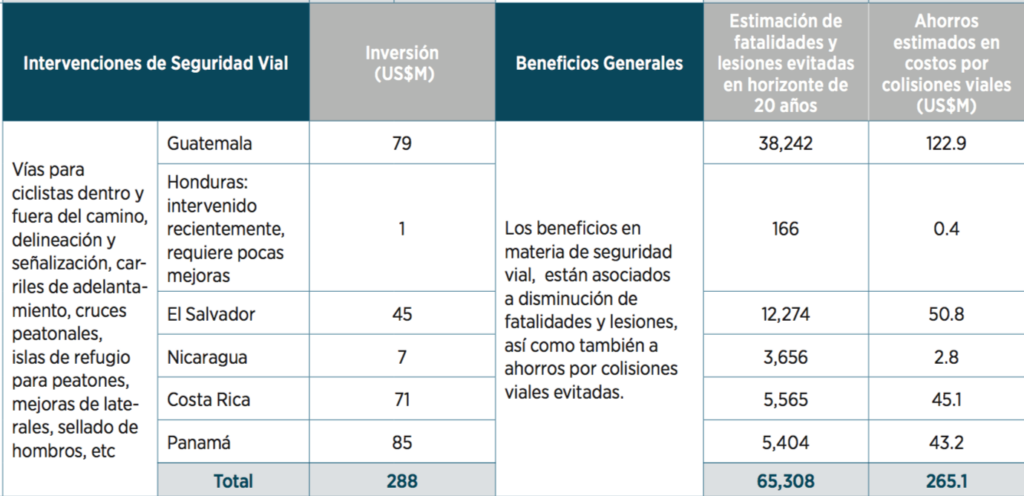 Con este proyecto y la implementación de las medidas respectivas se estima que se podrían evitar 65 mil muertes y lesiones graves, y generar ahorros de 265 millones de dólares por reducción de accidentes en los próximos de 20 años.