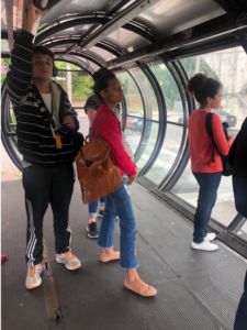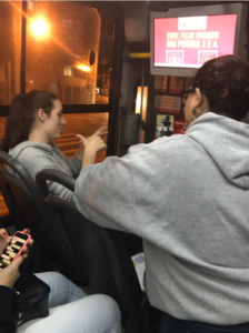Por otra parte, hay temas relacionados con los tiempos de espera y la alta ocupación de los buses que dificultan el acceso al servicio. Para los usuarios de discapacidad visual es de alta importancia que se aumente el tiempo de activación del torniquete y se cuente con mayor asistencia en las estaciones. Gabriela esperando el bus para ir a control prenatal. Foto tomada por Diana Sandoval Como acciones de alto impacto de política pública se propone capacitación al personal de estación y conductores de buses, con el fin de mejorar los protocolos de conducción, operación de plataformas al interior del bus y asistencia a PcD. Así mismo, mejorar el acceso al bus, para evitar elevados tiempos de espera, y las acciones asociadas a aumentar las opciones para recargar el saldo físico y online. Las mejoras en el componente operacional son acciones que se concentran en el servicio del transporte público, a través de alianzas con el ente gestor desde la planeación de los componentes de sensibilización y educación. En lo que respecta a las barreras comunicacionales y actitudinales genera un mayor desafío, puesto que en algunos casos pueden llegar a ser imperceptibles. La discapacidad es una limitación, una enfermedad o un déficit, cuando en realidad tiene que ver con el entorno. Carina estudiante de 23 años, es usuaria de la Inter 2 que le permite llegar a sus clases en la universidad. Carina a través del lenguaje de señas Libras comenta que: “la falta de letreros y mapas en la estación dificulta entender el sistema”. La falta de mantenimiento en los dispositivos de información existentes hace más complicado su trayecto. Carina en su recorrido de la universidad a domicilio. Foto tomada por Juliana De Moraes
