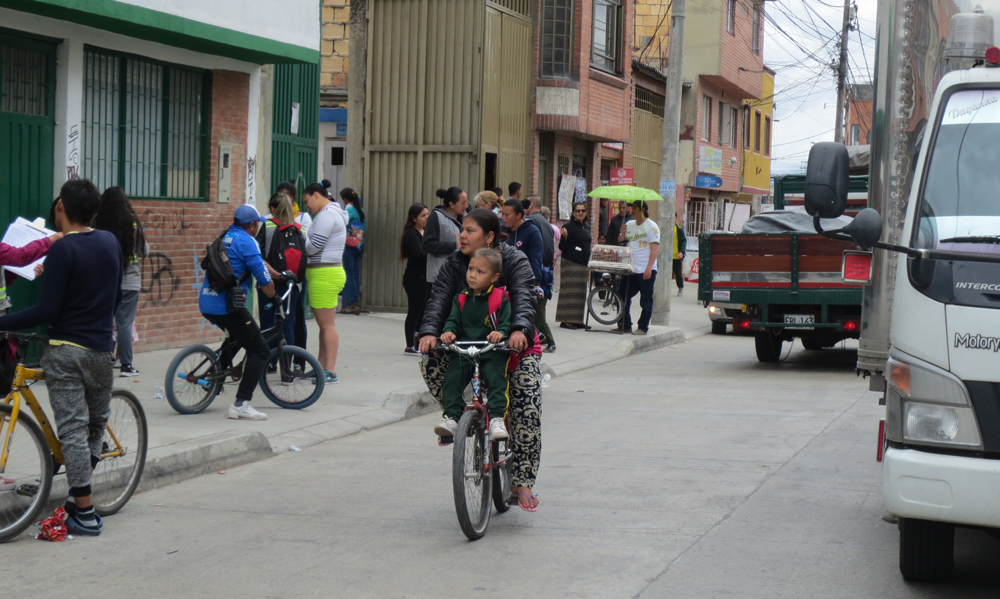 Según el estudio Viajes de cuidado en bicicleta en cuatro localidades de Bogotá, los adultos que transportan a niños y niñas como pasajeros no han sido visibles en las políticas públicas. Entre las principales barreras se encuentran la falta de infraestructura segura como carriles segregados o cruces seguros. Otra preocupación son los posibles robos y la falta de espacios adecuados y seguros para estacionar las bicicletas, así como la falta de acceso a accesorios adecuados para transportar en bicicleta a infantes de forma segura.