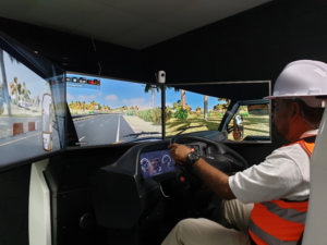 Instructor de la ENTT mostrando las prácticas de eco-driving con el simulador