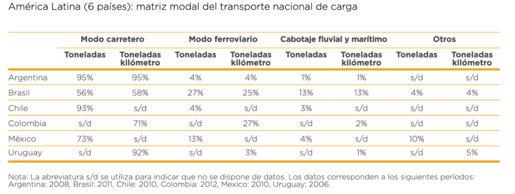 El transporte de carga terrestre es el más importante para la movilización de bienes en la región de América Latina y el Caribe (ALC), llevando más del 70% de las cargas nacionales de la región. Se estima que el transporte de carga tiene una participación entre el 3-4% del PIB nacional de los países de la región (Barbero & Guerrero, 2017).