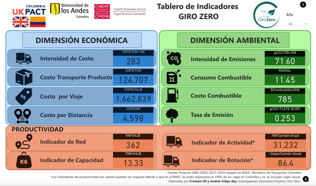 El Programa Giro Zero, financiado por Colombia y UK Pact y ejecutado por la Universidad de los Andes y Cardiff Business School, tiene como objetivo catalizar la adopción de tecnologías y prácticas que contribuyan a descarbonizar el transporte automotor de carga en Colombia. El programa tiene tres iniciativas principales: