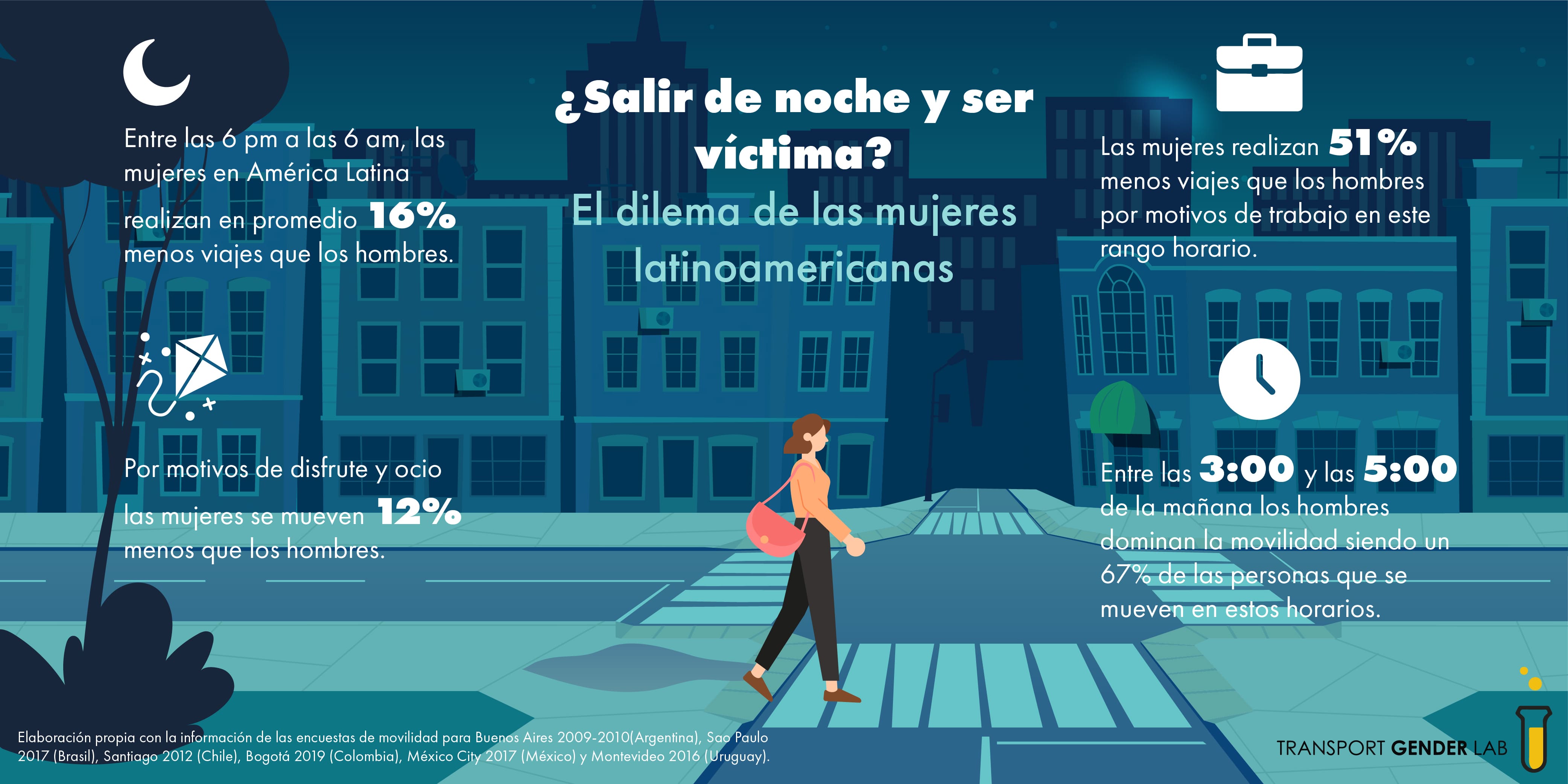 A pesar del miedo de las mujeres, es difícil conocer la situación actual de violencia contra la mujer. Los datos de acoso y violencia en la región son escasos y difíciles de recolectar, especialmente durante el horario nocturno. Los resultados del Transport Gender Lab del BID en un estudio en el Área Metropolitana de Guadalajara dan luces de la situación; las mujeres señalan que los horarios más frecuentes para acosos y agresiones suceden en la noche, en un pico entre las 8:00 pm y 11:00 pm. Además, la violencia contra la mujer es un fenómeno que traspasa fronteras sin importar el horario. En este sentido, UNWOMEN señala que en Ciudad de México 96% de las mujeres han sido víctimas de violencia, mientras que el Ciudad de Guatemala el 100% declararon haber sido víctimas de acoso .