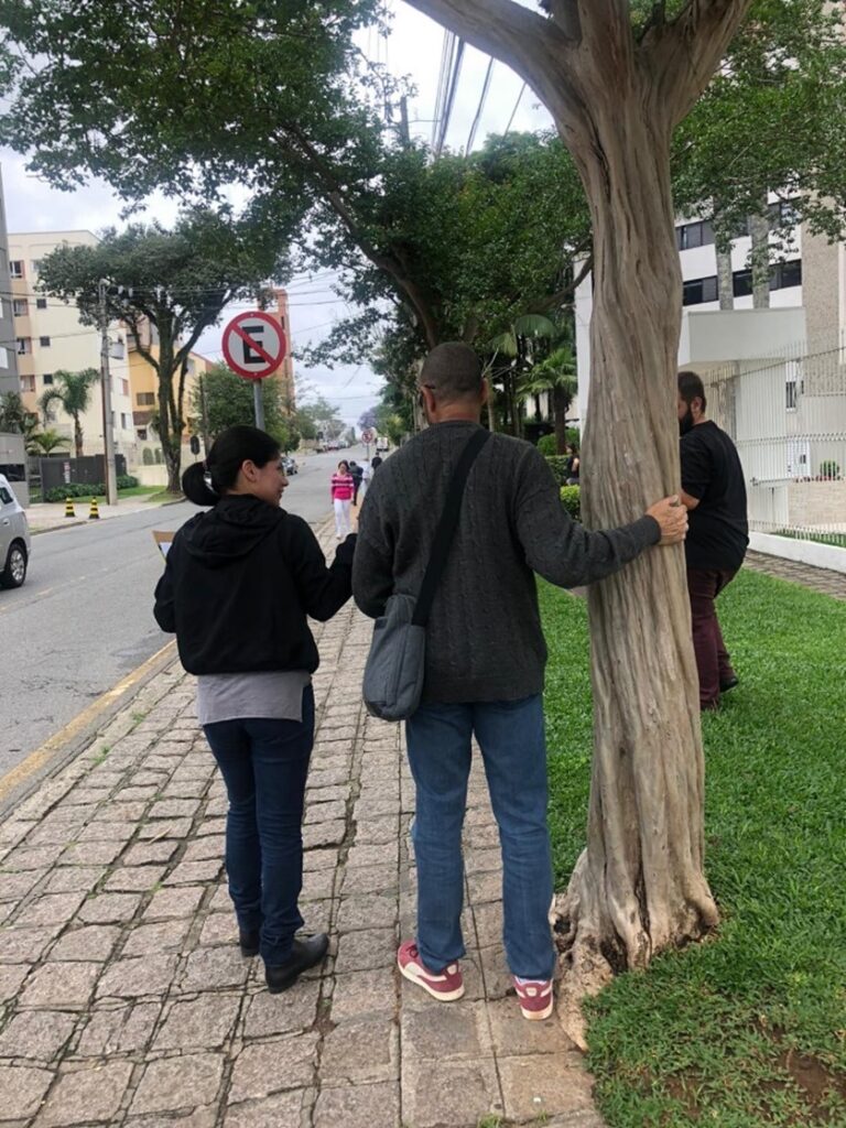 Antonio, 58 años, ciudadano de Curitiba, con discapacidad visual.
